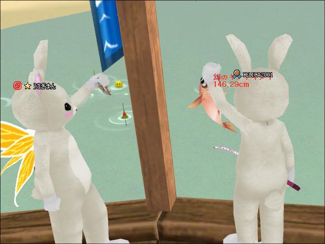 ○×の浜から、いつものGB生簀桟橋に戻ったら「うさぎまん」さんを発見♪