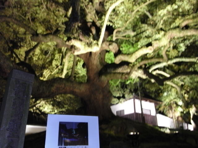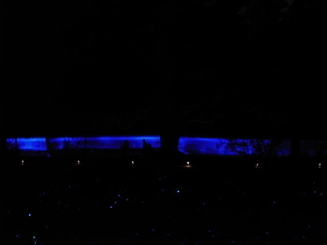 境内は照明が落ち、庭園をライトアップしてたんです。