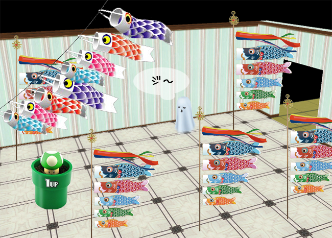 で、今回追加されたハウスオブジェクトのこいのぼりはまず作れないので