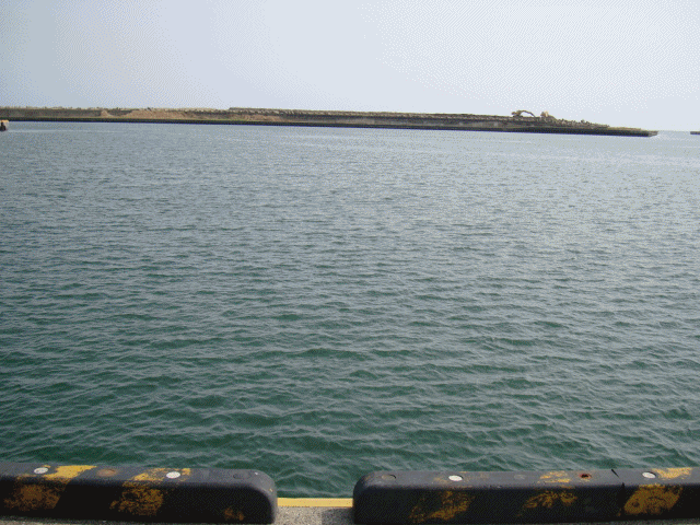 漁港の沖の方で新たな堤防の工事をしているのが見えました。