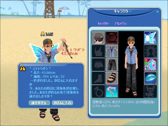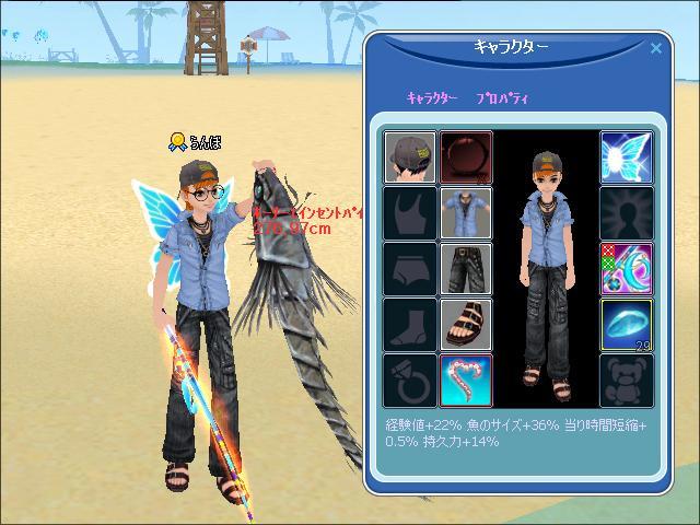 以前レベ30の竿をチュンした時、10回失敗・・・とかやってるうちに36レベになってしまった経緯もあるし。レベ40の竿はデザイン的に、やや男子には・・・な竿だったりもするので。。。^^