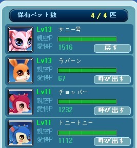 これくらいになるとペットたちもなかなかレベUPしたいよねぇ;