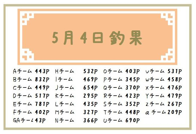 さて、「GOLD Rush!!」Uチームの結果ですが、5月4日の単日集計は3位でした。