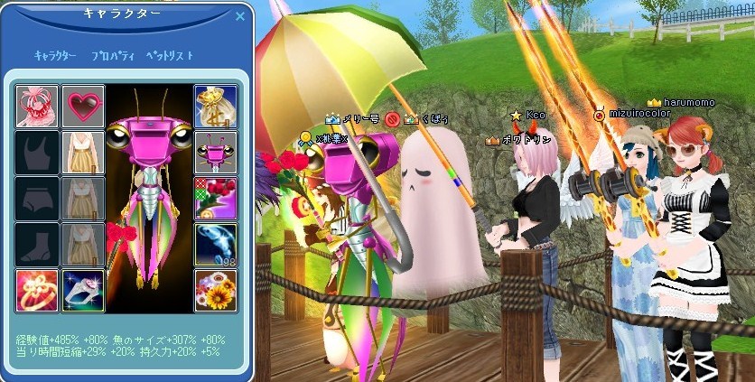 式後、打ち上げがてら、属性見ながら釣りに励みました。