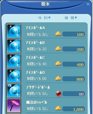 <05月11日のアップデートの主な内容>*新規マップの追加:アイスビレッジアイスビレッジへはこちらから↓≪アイスビレッジでの採集≫アイスビレッジ内での採集では、アイスビレッジ専用アイテムも入手できます。●専用アイテム:「アイスマテリアル」「アイスフラワーA」「アイスフラワーB」上記のアイテムは、<魔法師の家>シャシャにて、氷の家具へ調合する事が可能です。※採集は期間限定ではないので、お時間のある時に、ごゆっくりお試しください。アイスビレッジ側の樹木で餌が買えます♪シャベルも売ってました~服が精密でめっさ出るけど売価は0GでしたΣ( ̄□ ̄;)調合アイテム一覧*新規ペットを追加新しいペット アザラシはNPCホースバディーをから動物の島を訪問すると会うことができます※期間限定ペット『'純白アザラシ』は、5月25日(水)定期メンテナンスまで* MILU一週間限定のイベント21。お友達の素の調合の確率とペットを飼える確率を高める2。期間限定スキルブックの調合の確率上昇3。ビューティーショップ50%割引