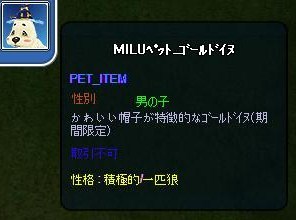 メンテ前に金イヌ捕まえました。