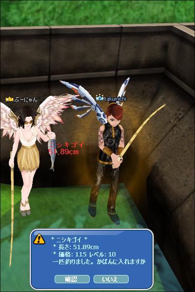 たくくんと釣り始めてすぐくらいの60ミッション中に釣れたのはニシキゴイ ><;;