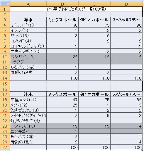 やっぱり特殊魚を釣るときはミックスボールがよさそうです