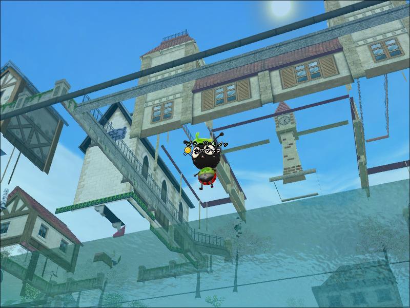 飛んだところがどこかの岸壁?かな、水の中 アワワ