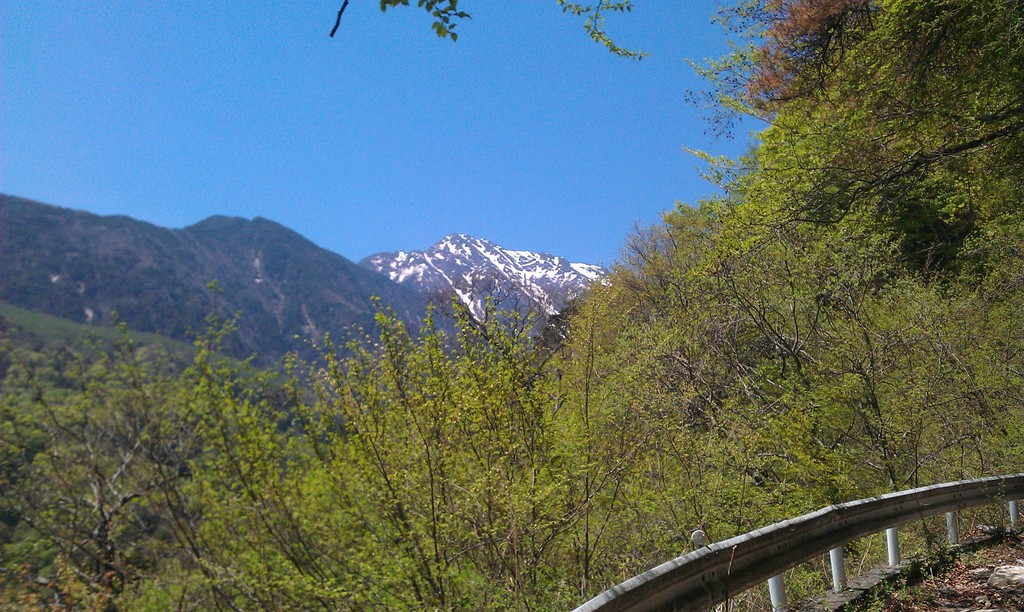 まずは新緑と甲斐駒を見ながら歩き始めました