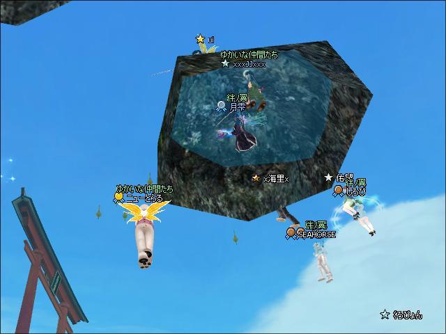 鳥居の近くでみんなで釣り^^