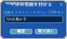 ペットはキャラクターネームと違って、重複なしのレコード設定がされていないため、他の人のペットと同じ名前でも問題なく付けられます。