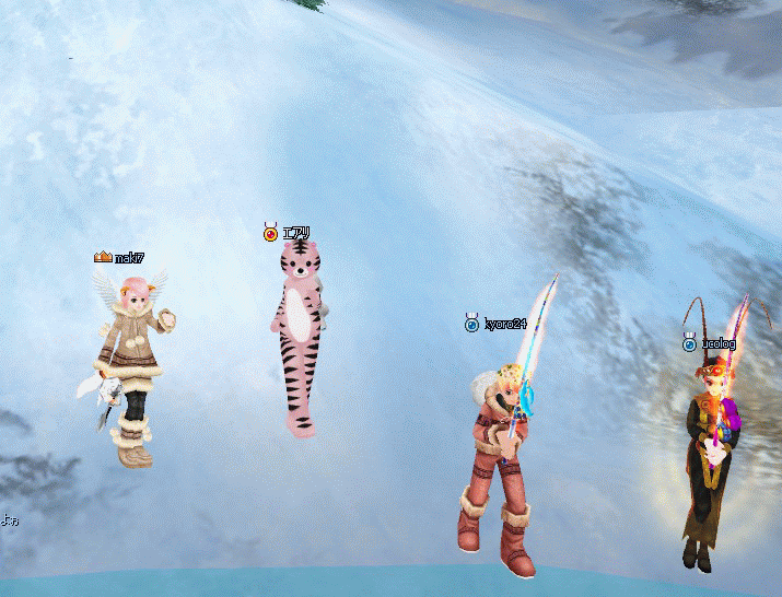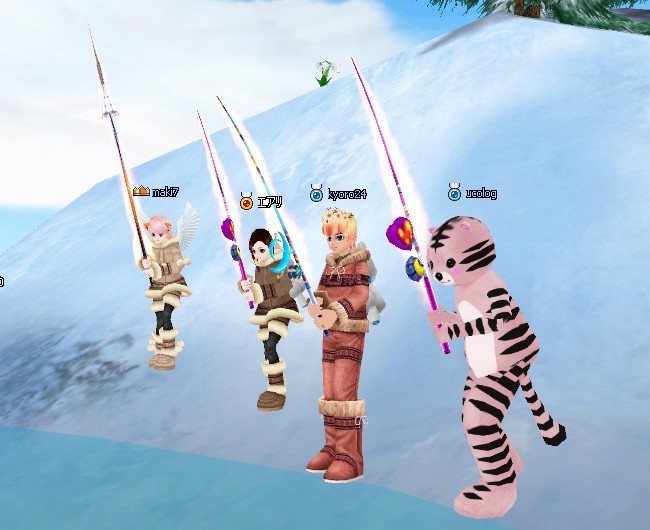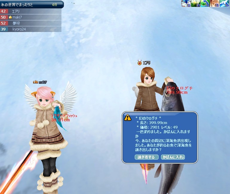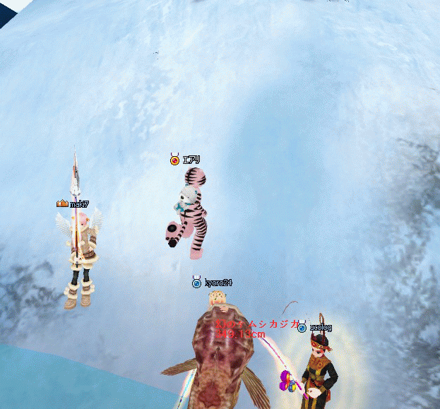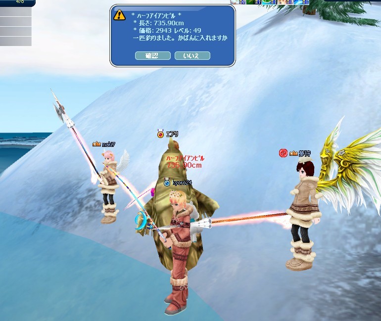 釣って~ (pなつさん、夢狩ちゃんのハルバードに刺さる!)