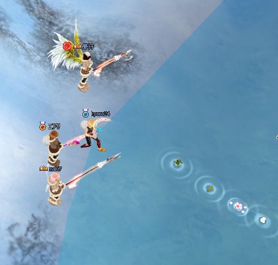 4人の浮きが一列に並んだりしてー