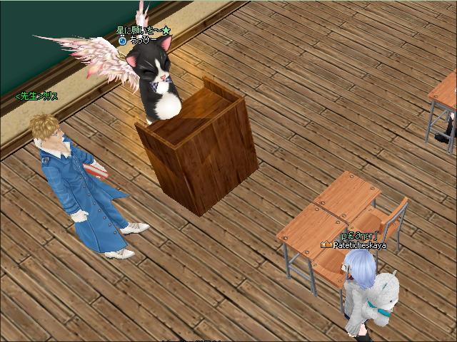 ゆかりちゃんは・・・にゃんこさんのお腹が教卓に~って指摘したから立たされてるのかなぁ^^;