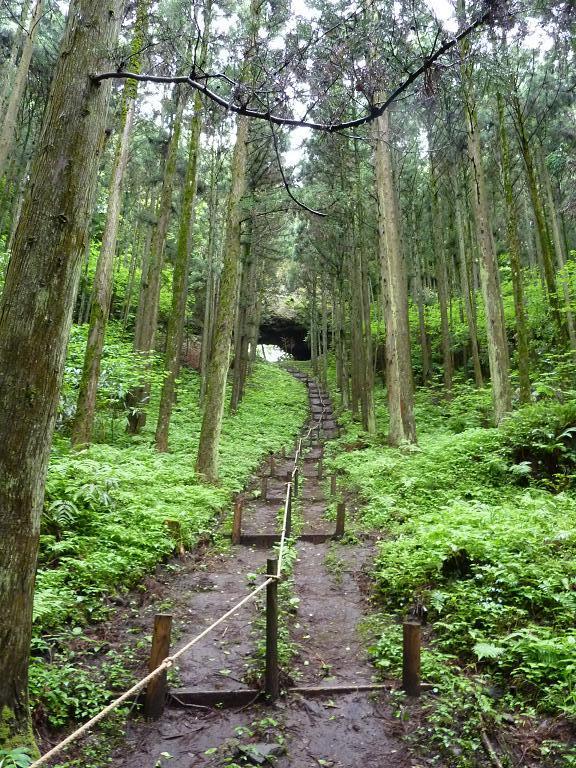 見えて来ました。^^v 穴の岩壁は外輪山です。