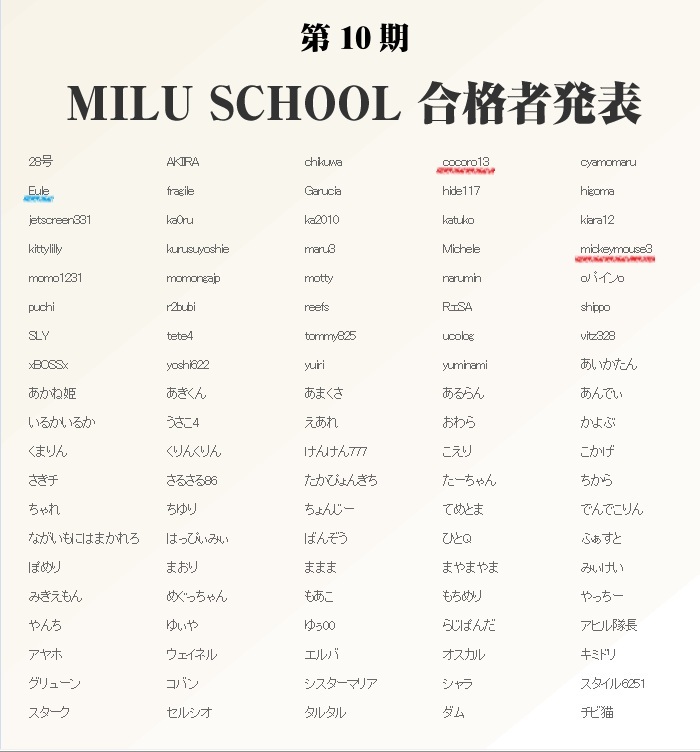 本日MILUschoolの合格発表がありました。