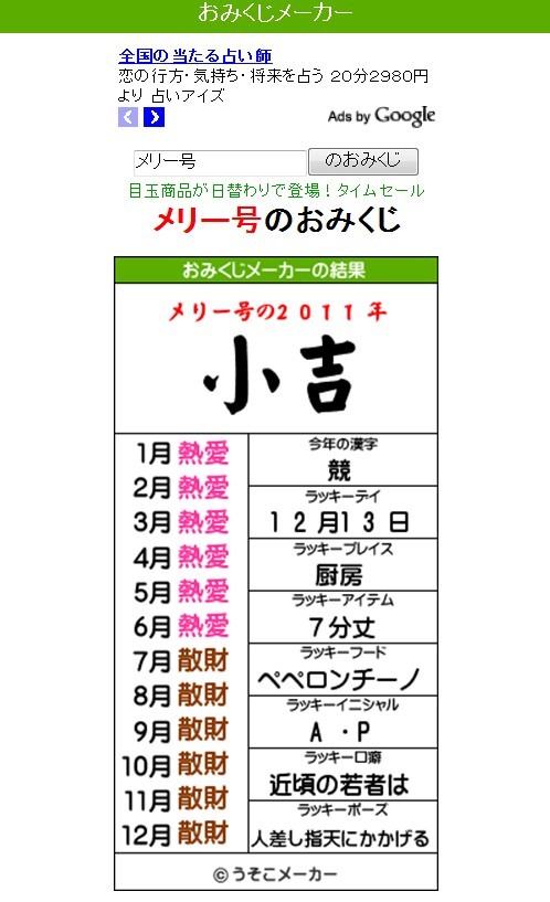 メリーさんらしい結果がでてますねw