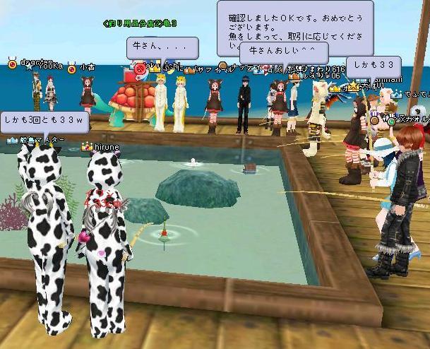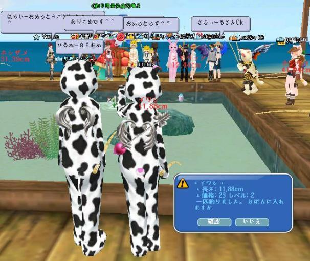 久しぶりに夜鯖のイベ王に参加して、メンテ後に夜鯖が消えて愕然としました(゚Д゚; が・・今朝、戻ってキマチタ・・(´▽`) ホッ しず甘┳┓モー❤の楽しいPTに、お邪魔して~深海魚だって、バブルなしで釣れた♪ 夜鯖住人に戻れるかも…|ョω・´)ジー(現在進行形w) 火曜日の夜に話を戻そうww  銀破きたー! ミナチャで叫ぶ… 店長甘┳┓モー❤ 立て続けに2個ゲットだそうで、またすぐに3個目ゲットされたまちた☆ |・`ω・) ス・スゲェ…  アタイも1個きた♪ 久々の緑文字・・  この指輪を手にするのは、4度目ですwww よっぽど縁が、あるのかなぁ・・ お祝いフレチャ゚.+:。(´∀`)゚.+:。ありがとう!  水曜メンテ日の和陣君のゲリラキャストぞろ目イベは、朝6時から・・ いつも起きられない 店長甘┳┓モー❤と、まったーり釣ってたら時間になったw ハム×牛の戦いwww 店長、33の3連続・・でも、牛歩w  オチイ…(◞‸◟)  やっと、ぞろ目キター!遅いけど・・叫んでみたw 店長、優しい ❤ありがとー(((((((((* ̄3 ̄)ちゅ  ハムには負けない!と・・誓った、 甘┳┓モー❤ で・・あったw 頑張ろう(・∀)(∀・)ネー☆ 続く・・w