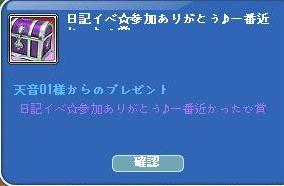↓  夜鯖に移動して・・・少しだけ、気分も落ち着きました・・ふw 天音さんの日記イベで、頂きました♪ありがとう ❤ いいもんに化けると、いいなぁ~Oo。。( ̄¬ ̄*)ぽあぁん
