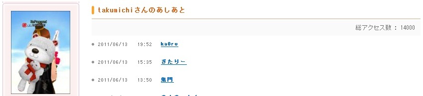 | 足跡14000☆*:;;;;;:*☆ 才×〒"├ウゴザイマス☆*:;;;;;:*☆ |