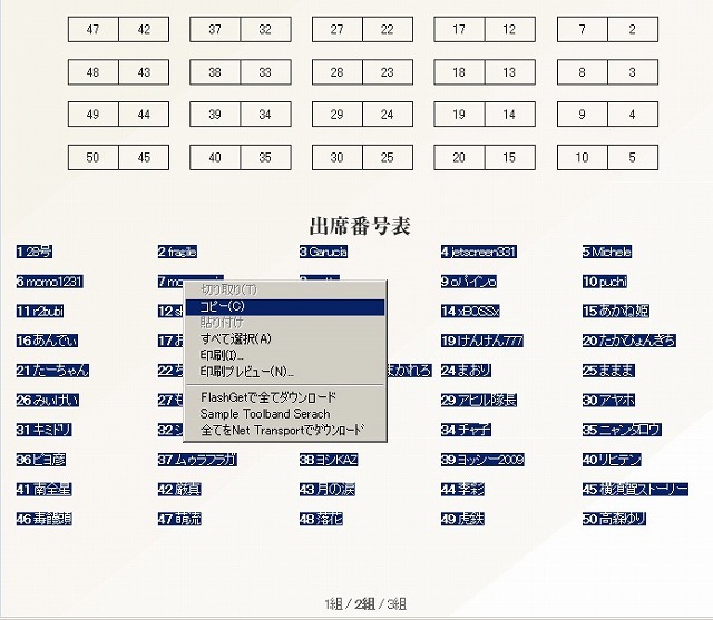 1、公式から出席番号表から名前と番号をまとめてコピー