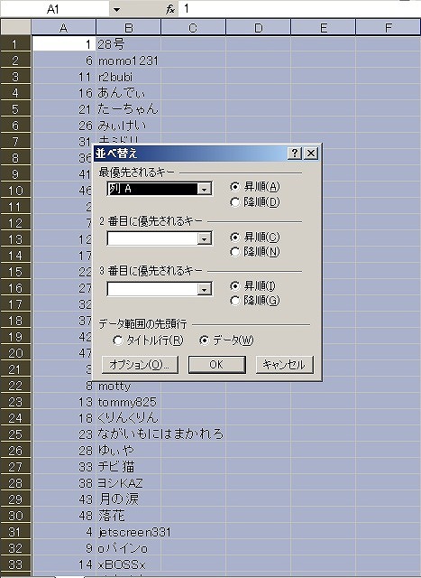 5、出席番号で並び替えてエクセルのファイルで保存