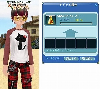 リムーバは45竿用に使おうかなっと一個作っておいたので、40竿用を調合しに行くため噂のネコTシャツ着て、捨て花使わずに1発調合して成功(前回は一回失敗)