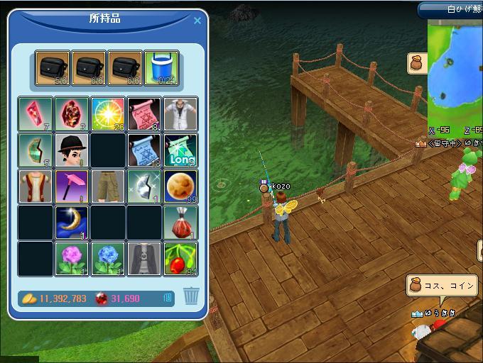 朝釣りに出ました。アジサイの花から、宝箱、しろペンキ、調合で、100万ゴールドと10万ゴールド2枚出ました。