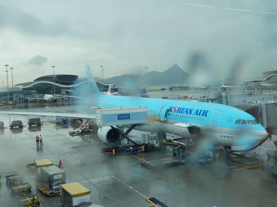 そして、搭乗準備中の到着し整備中の「大韓航空」機