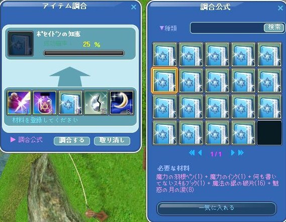 スキルブック調合UP中なのでポセ挑戦したら3回中2回成功したと書いてあった