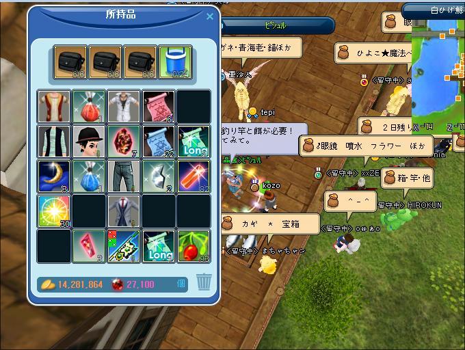 昼から、堀りお、していました。魔力の花お集めて調合して、10万ゴールド3枚出ました。現在の所持金、14,281,864万です。