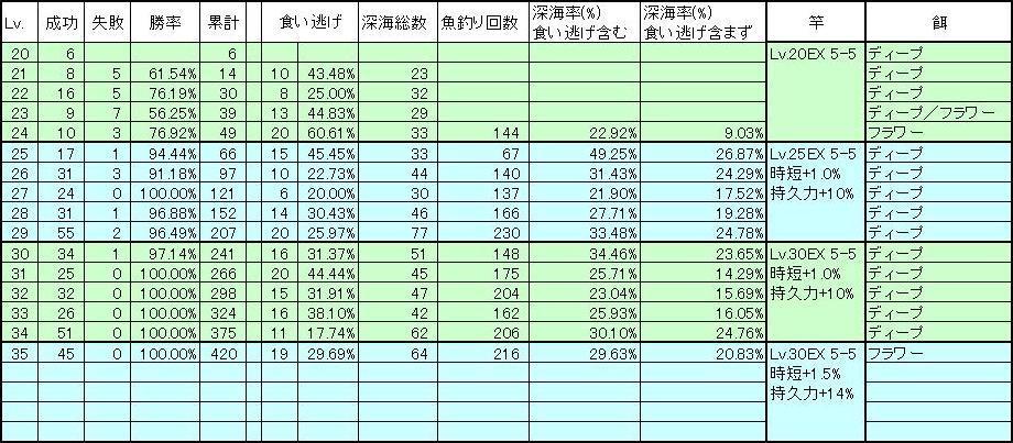 釣った深海魚のレベルはメモしてあるので、そこから副次的に統計とれるかもしれません。