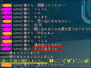 UP間近になったときINしてた、るもたんに声をかけた