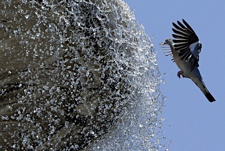 鳩も水遊びですかねww |
