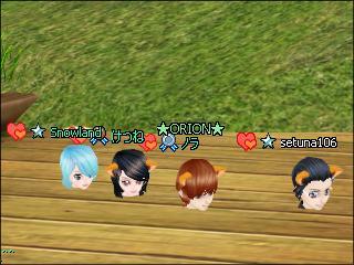 ノラさんとけつねさん、スノちゃんでみんな仲よくハートマークだして釣り^^