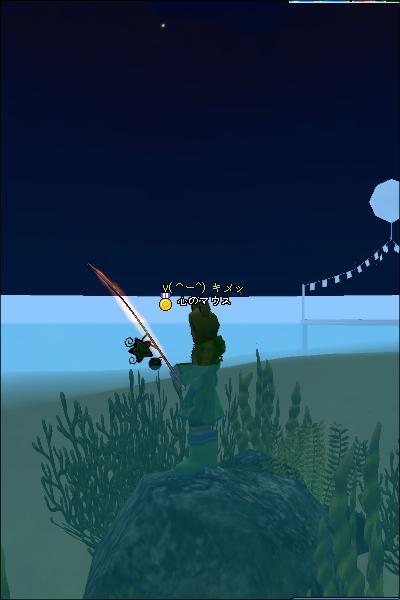 あまりの暑さに、夜鯖で 半水中釣りですな