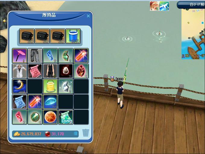 夜釣り、亀2のマリーナで、釣りです。採集宝箱5個で、調合10万ゴールド2枚でました。服のチューニング、幾つかしてます、水着スーツ、他。