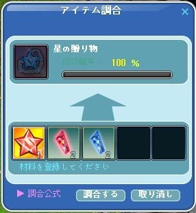 「星の贈り物」を調合して「使う」とアイテムが出る仕組みです。