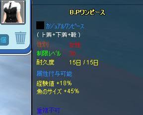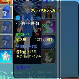 今回は経験値30のオーバーチュンで失敗しましたが、目的だった魚サイズはノーミスで30まで上げられたので良し♪(10服なので40まで出来ますが赤結晶不足…)
