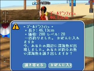幻の魚が対象と言う事で例のケーキ冠の青をゴールド稼ぎを兼ねて装備。