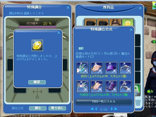 ニコニコUP&羽の調合おめでとうございます^^