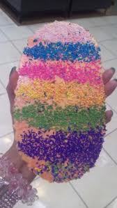 えびせんにシロップで絵を描いて、ザラメをかけて食べるせんべいですw