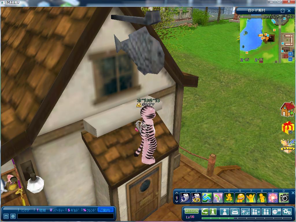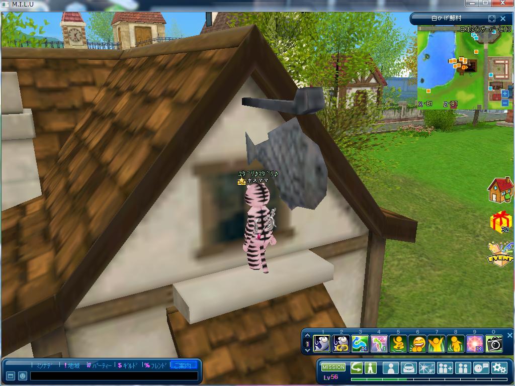 ピッシュルに屋根に乗って窓から偵察w