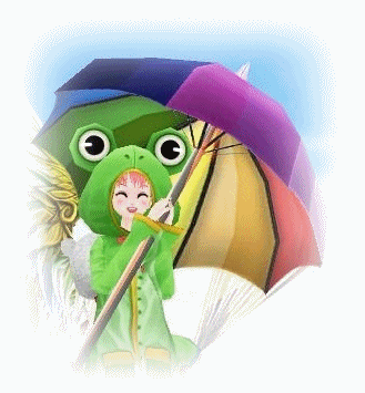 カエル×レインボー傘