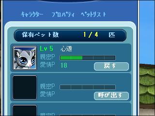 ペットの心遊がLV5になりました。 |