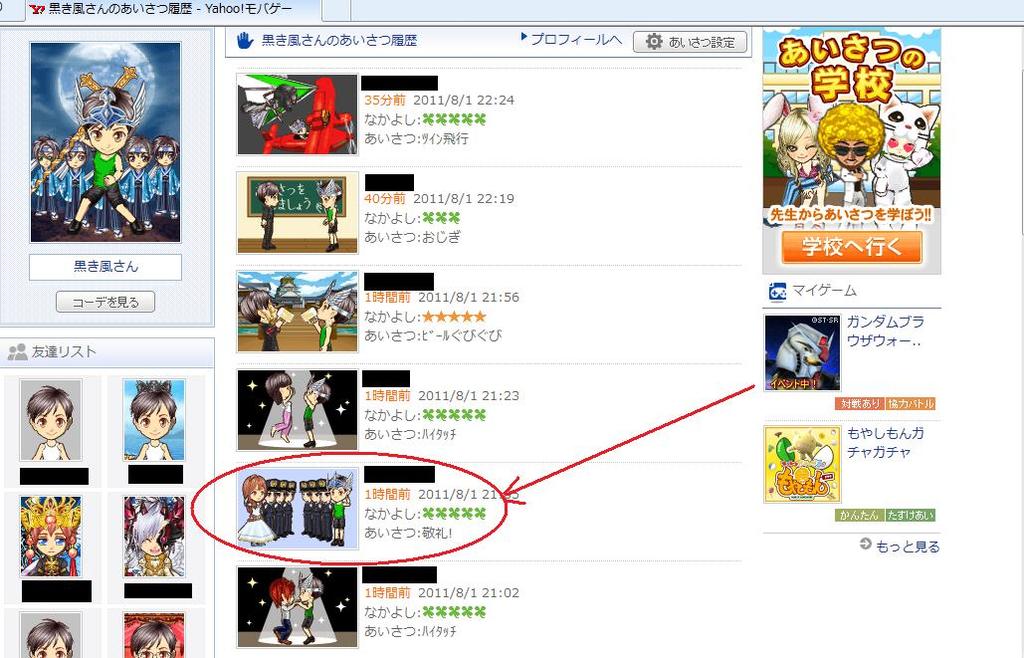 あいさつの文字と、モーションは分かれてしまいますがモバゲーの様なあいさつモーションもいいものです。