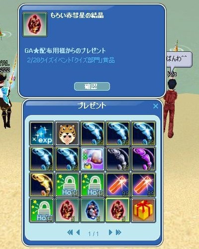 その後3鯖の面々と釣ってる最中にプレゼントBOXが膨れたので何だろうと確認してみると