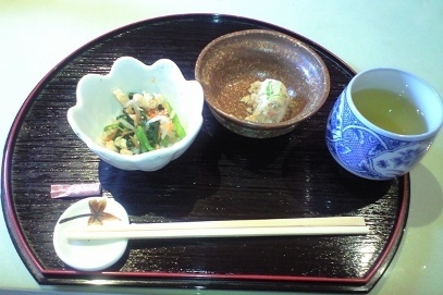 オカラとお浸し、しっとり~いいお味☆ お茶もね、温かいのか冷たいのか希望を訊いて下さる♪
