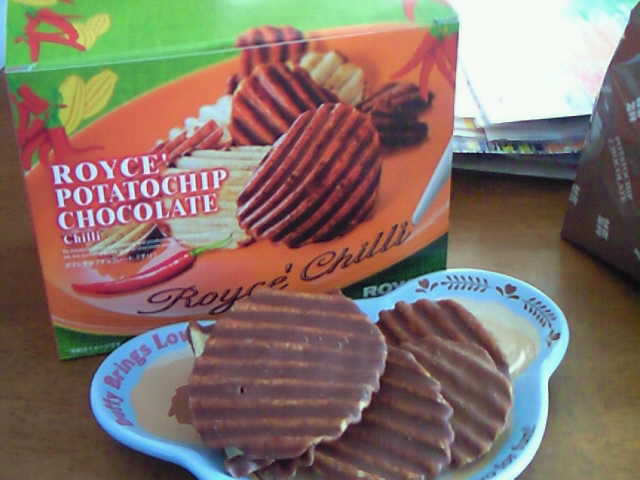 ポテチチョコ、元々甘しょっぱいものなんだけど、こちらは辛さもプラスされてます。